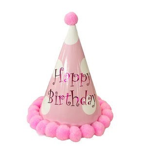 Happy Birthday Girl's Pink Pom Pom Hat