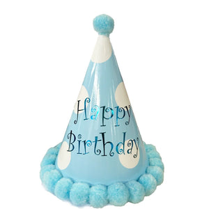 Happy Birthday Light Blue Pom Pom Hat
