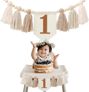1st Birthday Brown Tassel Banner High Chair Garland Decorations Cake Smash Backdrop
